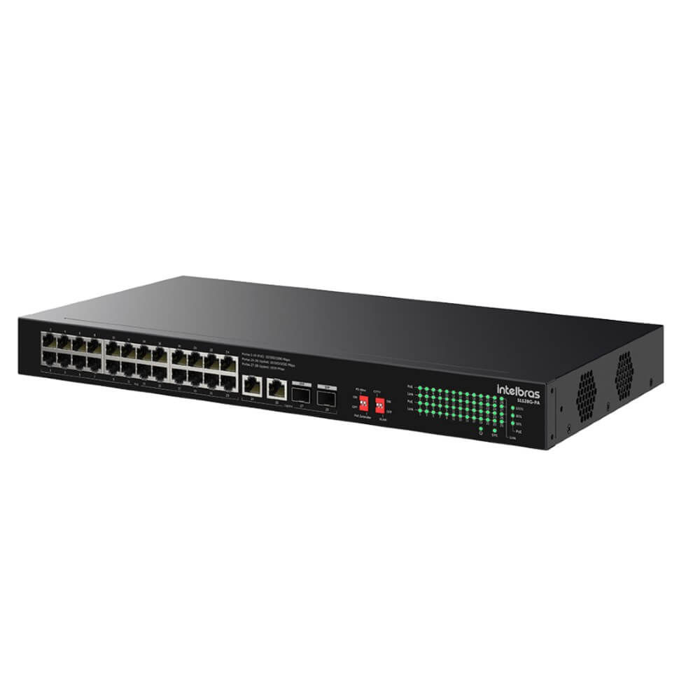 Velocidade e Flexibilidade Com suas 24 portas Gigabit Ethernet e 4 portas Uplink dedicadas (2x RJ45 e 2x SFP), o S1128G-PA oferece máxima velocidade para a rede e flexibilidade para conexões híbridas, utilizando tanto cabos de rede convencionais quanto fibra óptica para longas distâncias.